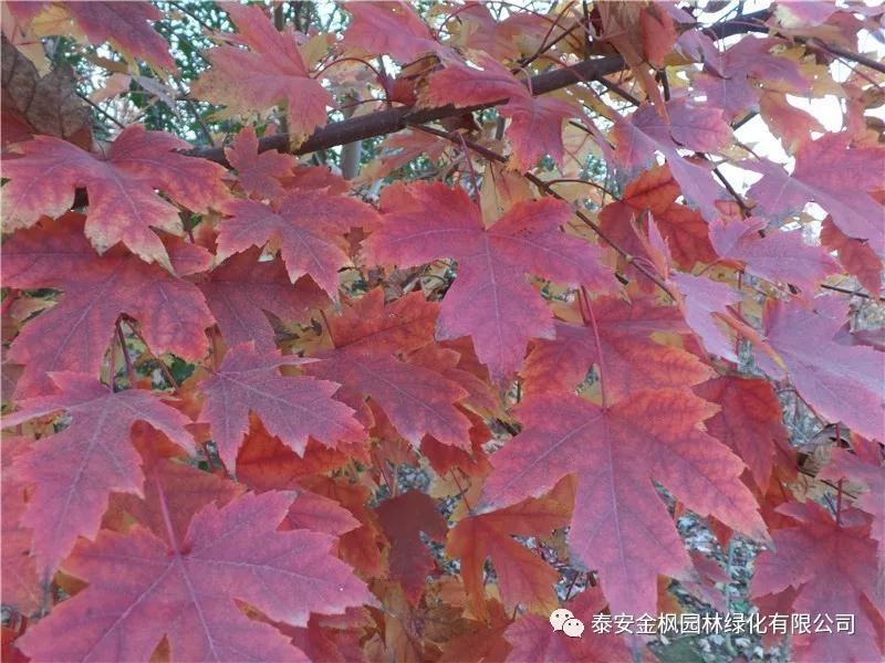 美國紅楓(學名:Acer rubrumL. ):原產于美國東海岸,主要來自于美國北部以及加拿大大部分地區。是落葉大喬木。生長較快,成年樹高12-18米,冠幅12米,能適應多種范圍的土壤類型生長。春天開花,花紅色。因秋季色彩奪目,樹冠整潔,被廣泛應用于公園、小區街道栽植,既可以園林造景又可以做行道樹,深受人們的喜愛,是近幾年引進的美化、綠化城市的理想珍稀樹種之一。也是唯一可以用作行道樹的彩葉樹種。