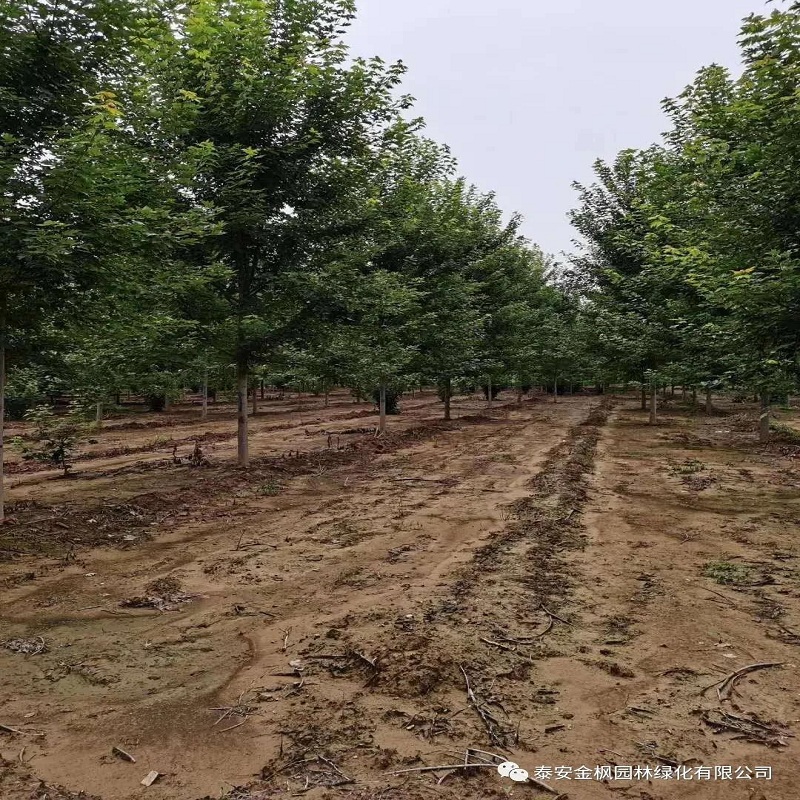 我們感嘆大自然的鬼斧神工,卻還是應該相信自己的力量。泰安金楓園林在2014年便步入生產紅楓樹的行列,從大棚扦插苗開始,自繁自養,現在已有紅楓大樹基地2000余畝,從當時的枝葉稀疏到如今的茂密叢林,生長標準如同工業化產品。我們一路走來,辛苦卻不言累,感謝辛勤耕耘的小伙伴們,讓我們欣賞到如此標準的大規格美國紅楓。